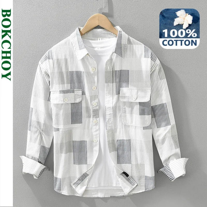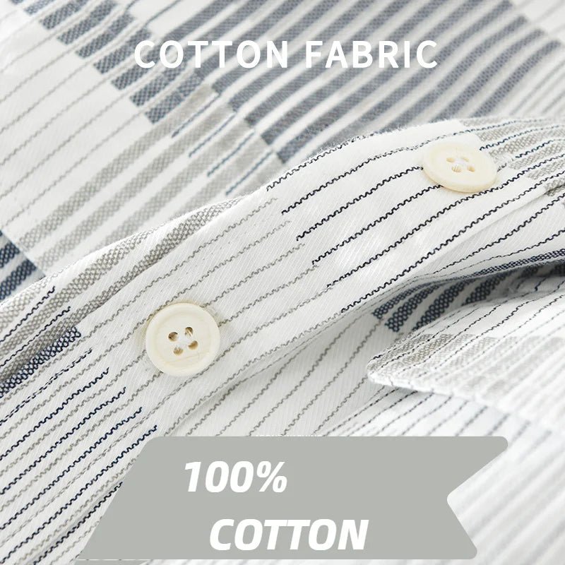 Autumn Men’s Striped Cotton Shirt – Casual Loose Fit┃MSH295