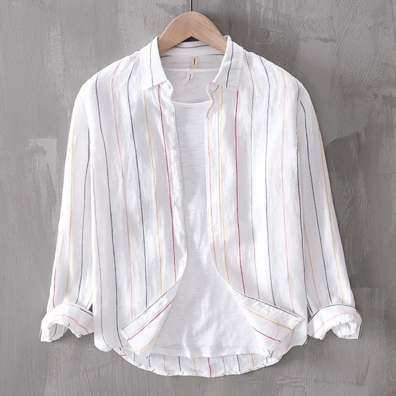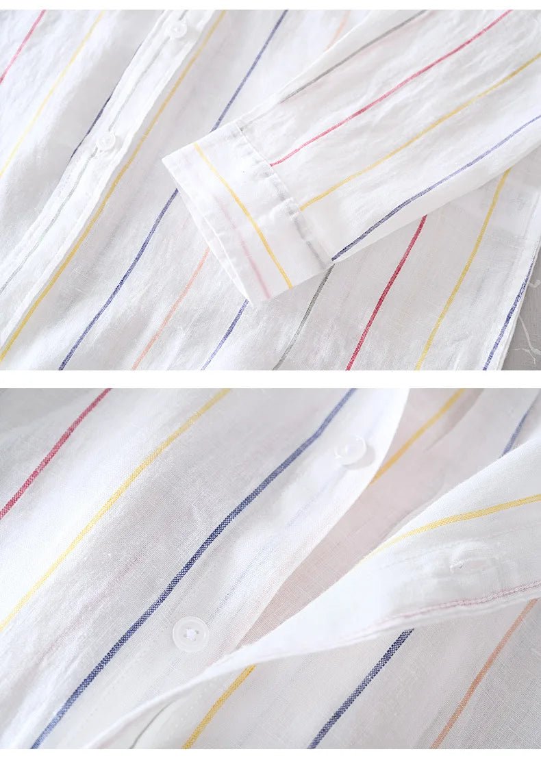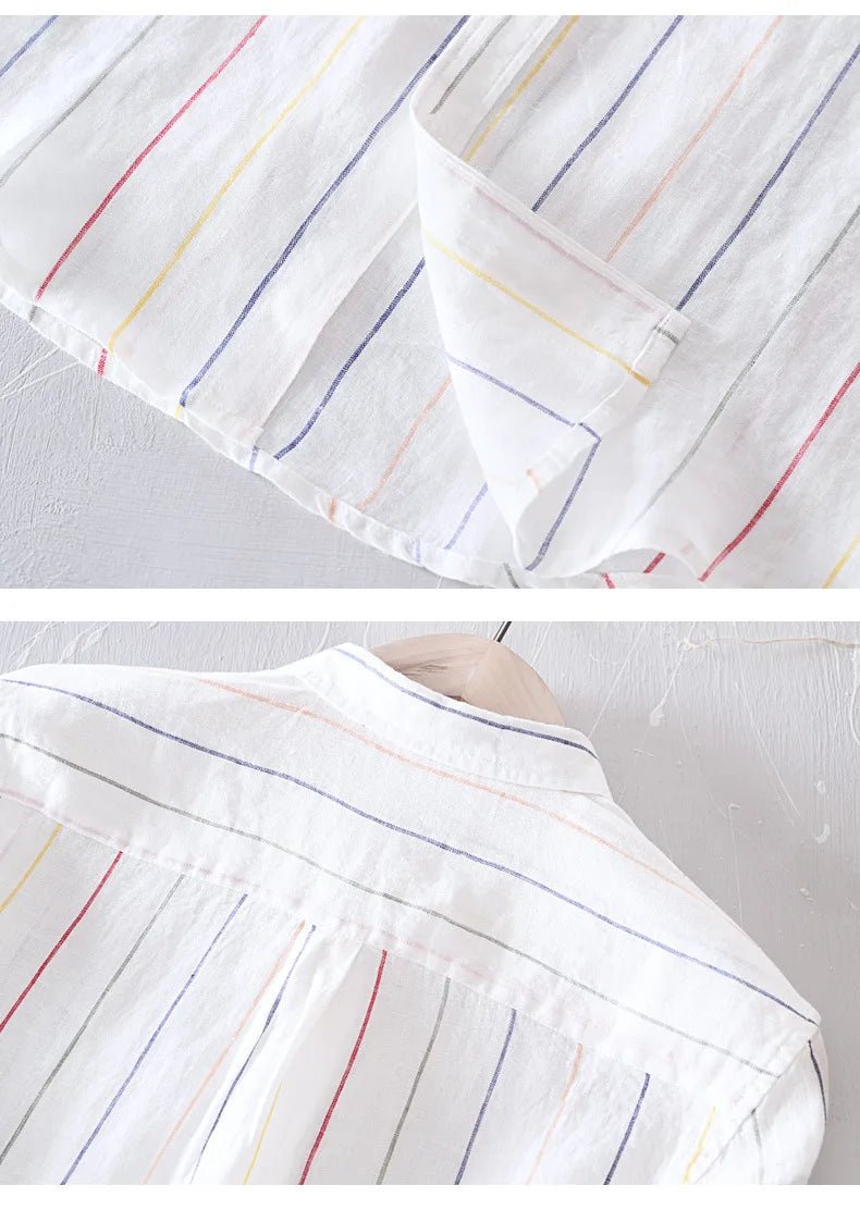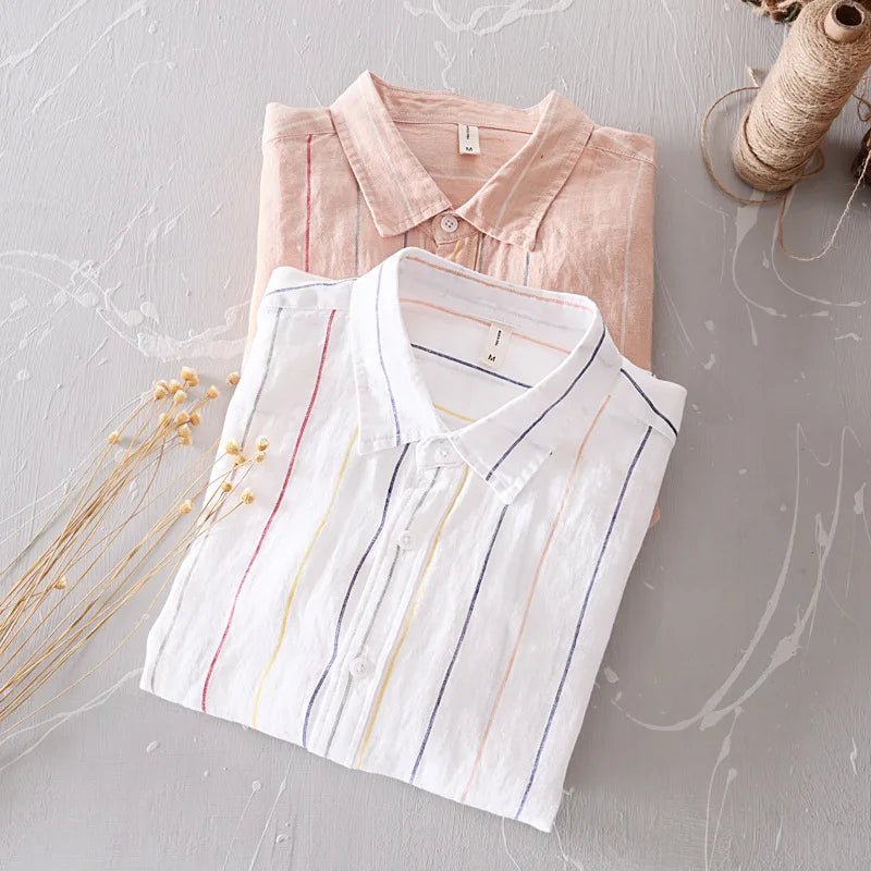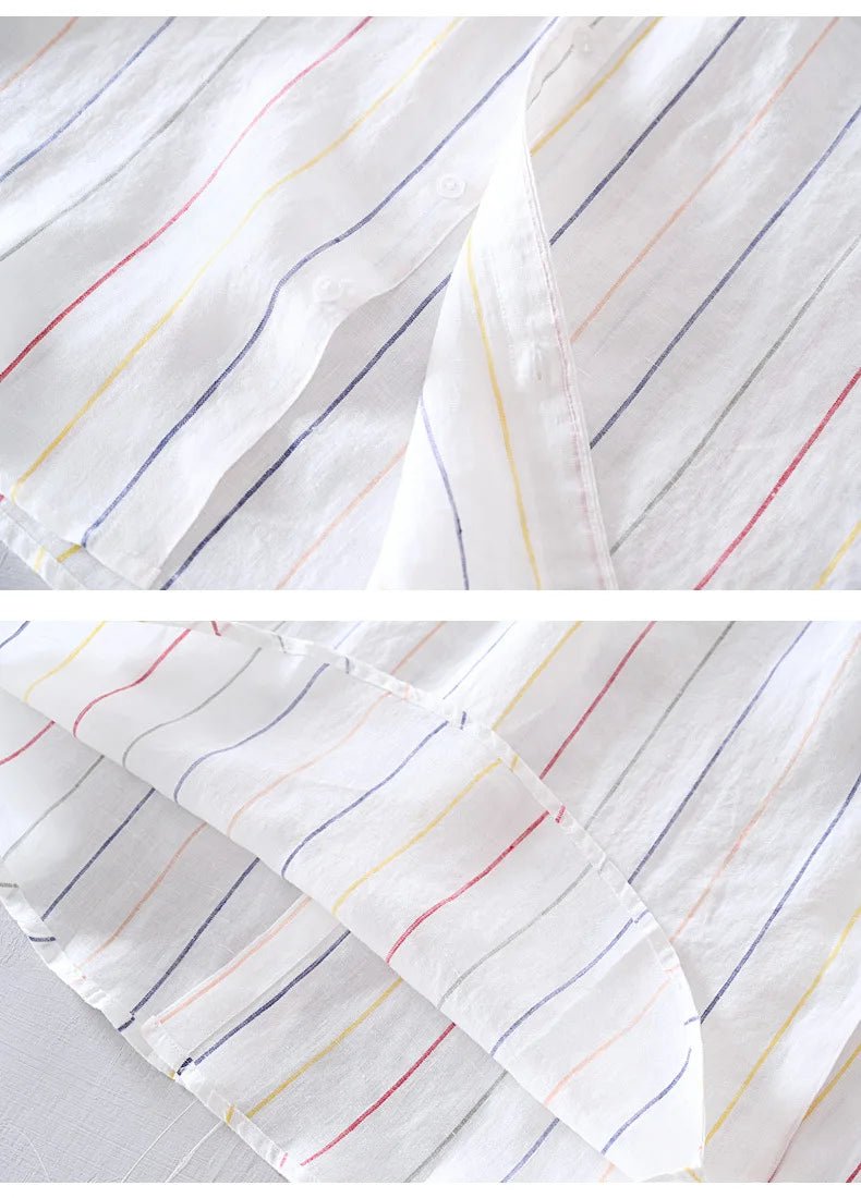 Men’s 100% Linen Striped Shirt – Business Casual & Lightweight┃MSH292