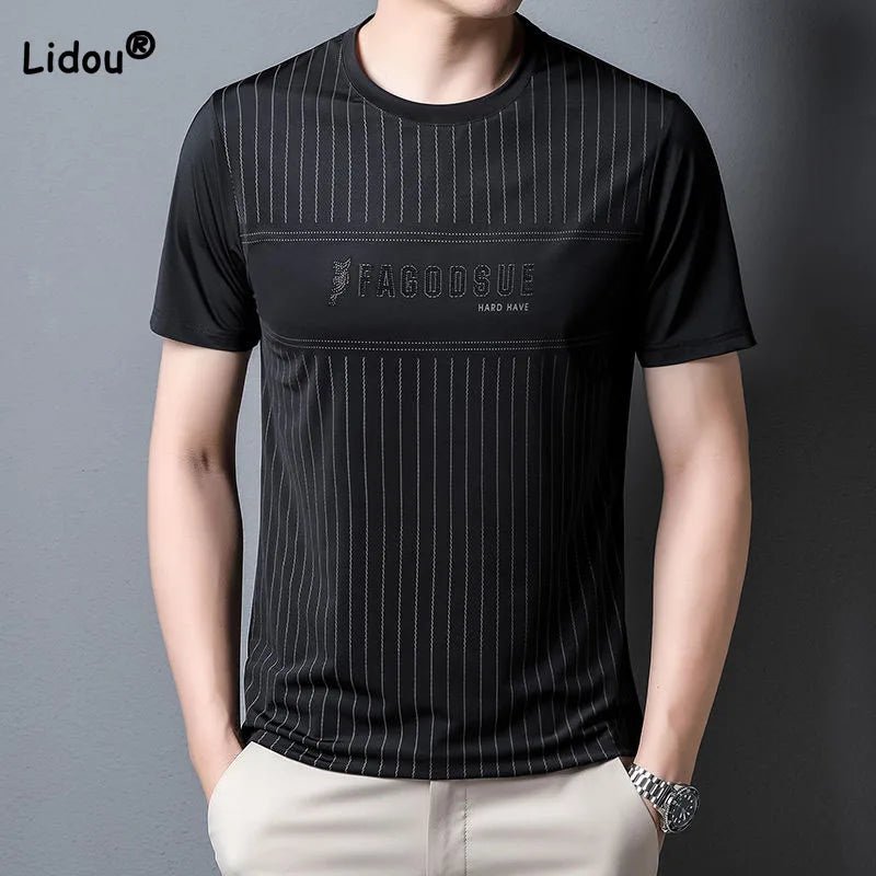 Men’s Casual Letter Print T-Shirt – Summer Round Neck┃MTSH391