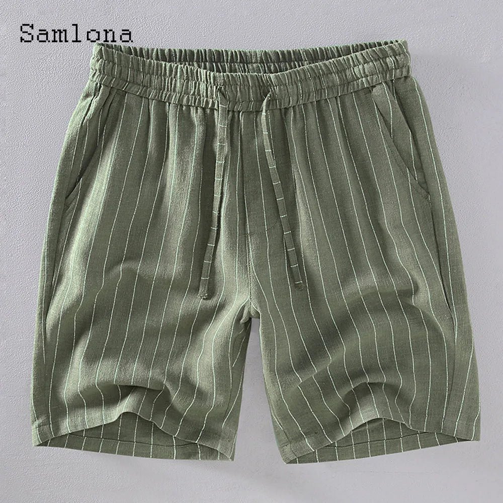 Men’s Casual Linen Striped Shorts – Elastic Waist┃MS310