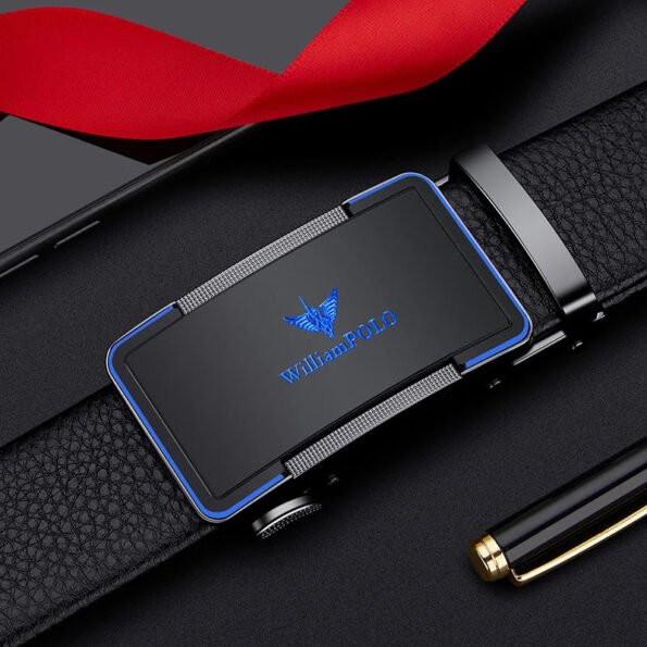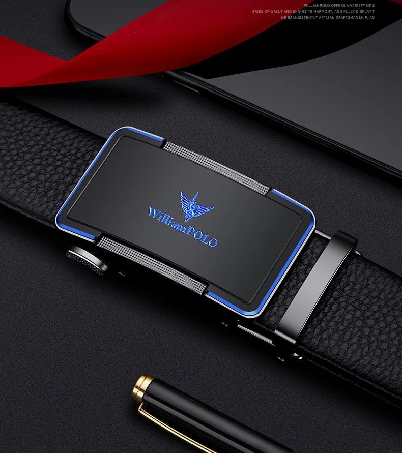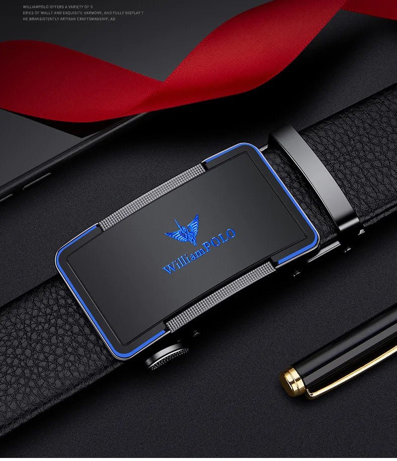 WilliamPolo Men’s Luxury Leather Belt with Metal Buckle┃MB398