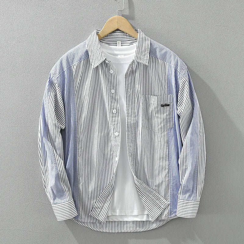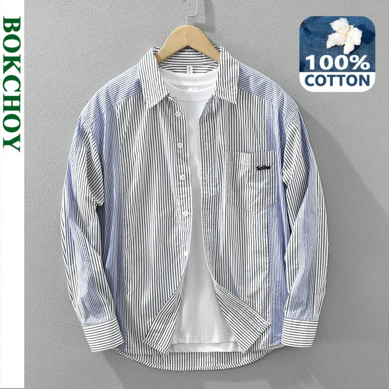 Men’s Spring Striped Cotton Shirt – Casual Streetwear┃MSH304