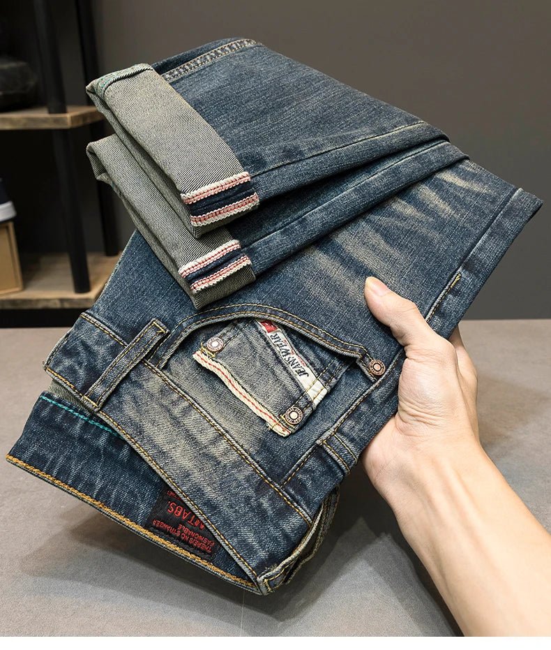 Vintage Blue Men’s Washed Jeans – Casual Pencil Pants┃MP300
