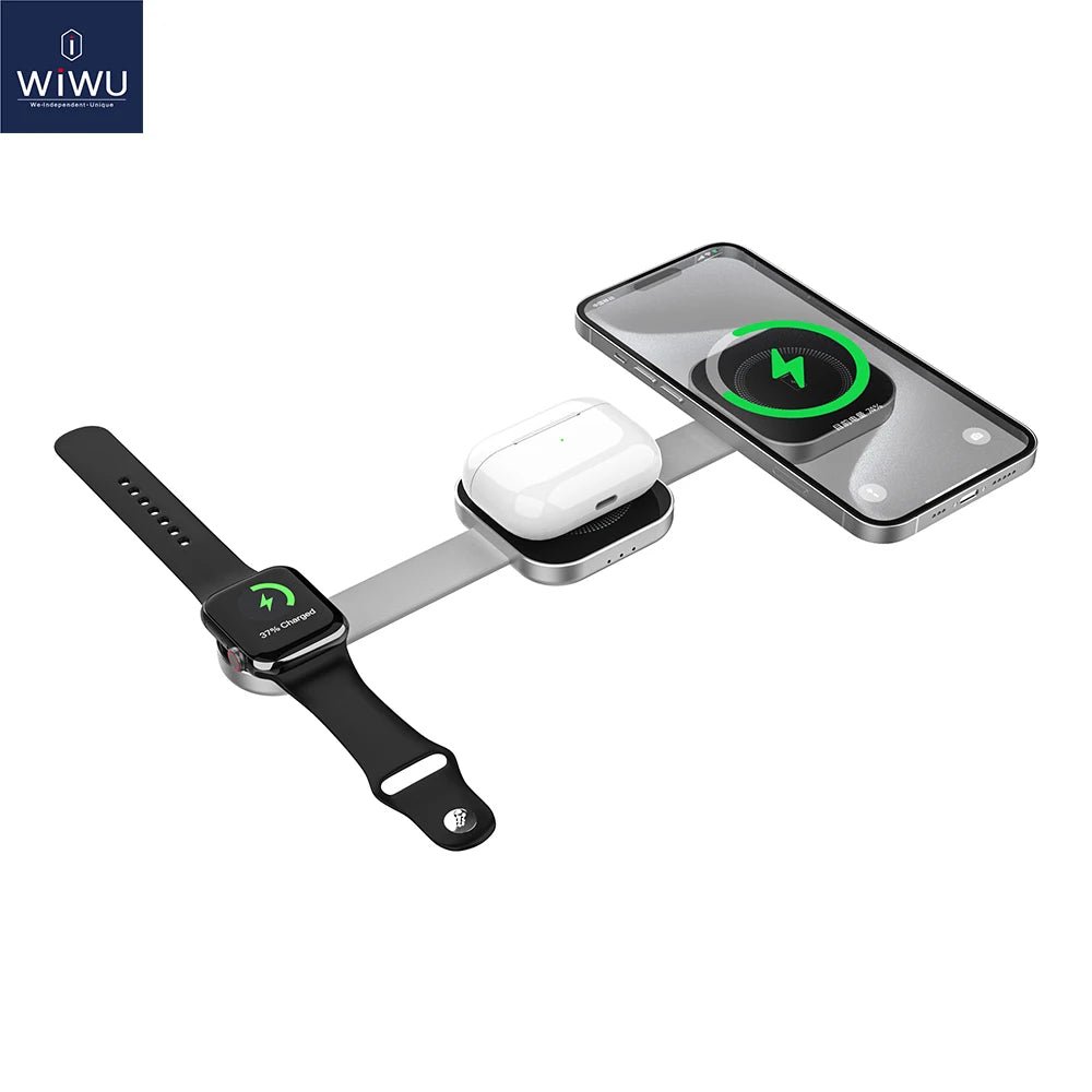 WiWU 3-in-1 Foldable Wireless Charger for iPhone, Watch & AirPods┃WCH290